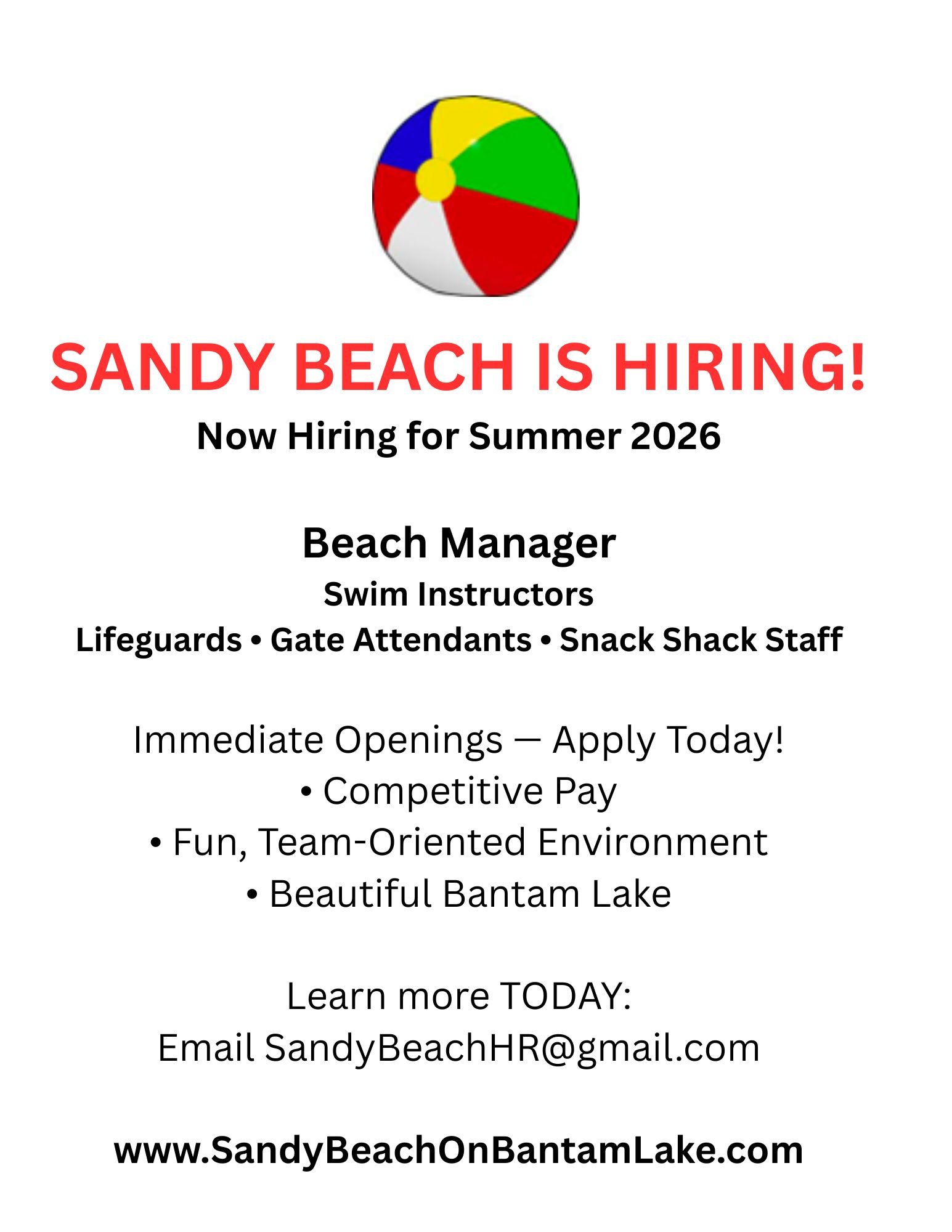 2026 SANDY BEACH EMPLOYMENT APPLICATION